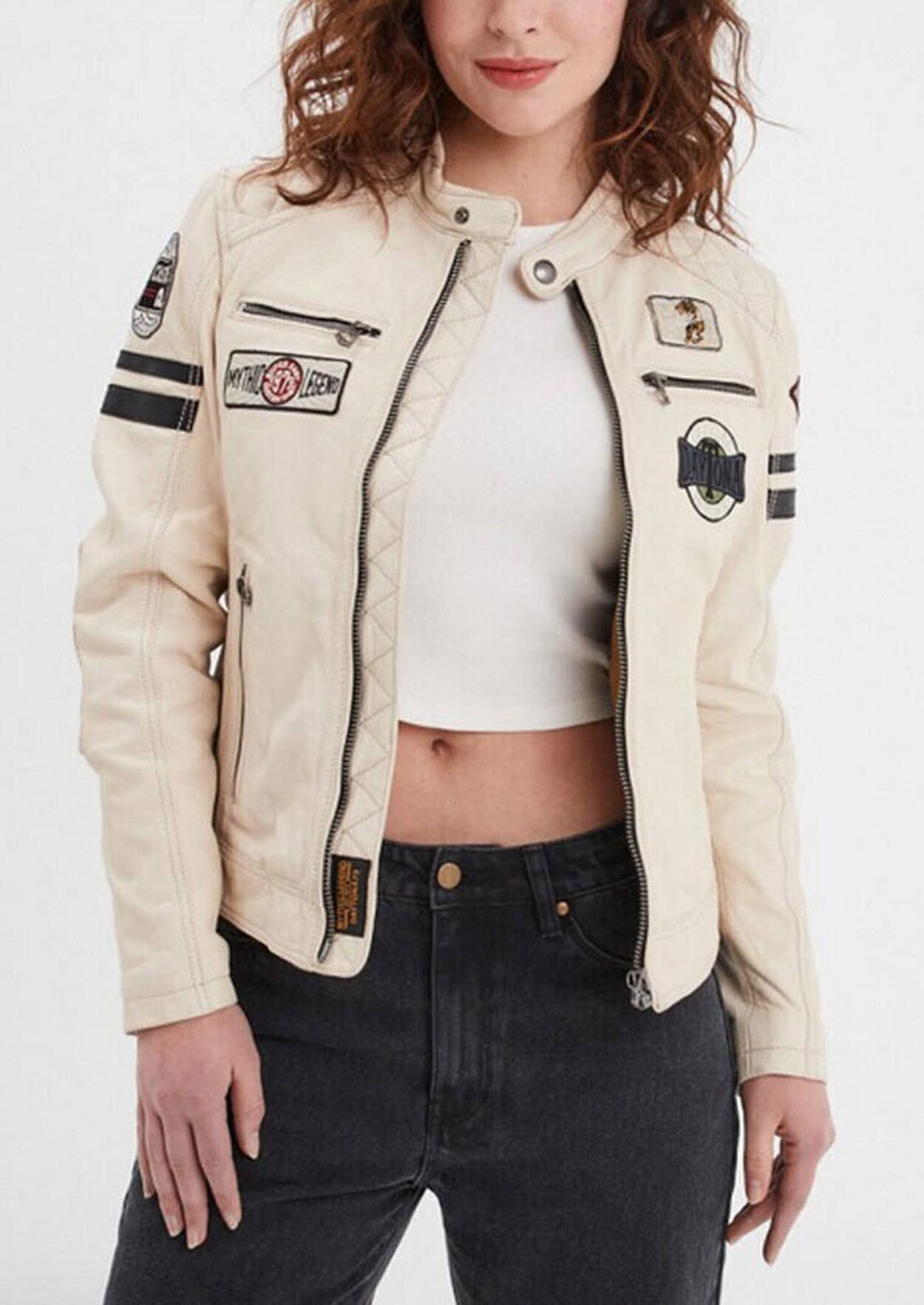 Here we discover a flagship jacket from the Rose garden collection. The jacket draws its inspiration from vintage car and motorcycle races with a very racing design. It is made of vegetable-tanned lambskin, lined in cotton on the body and polyester on the sleeves. The leather jacket has a small mandarin collar with press studs, closes with a straight zip and has comfort zips at the bottom of the sleeves. You have 2 zipped chest pockets and two zipped slant pockets, diamond stitching on the shoulders and elbows. And its look is reinforced with the leather bands on the sleeves and its numerous vintage motorcycle-style embroidered patches.