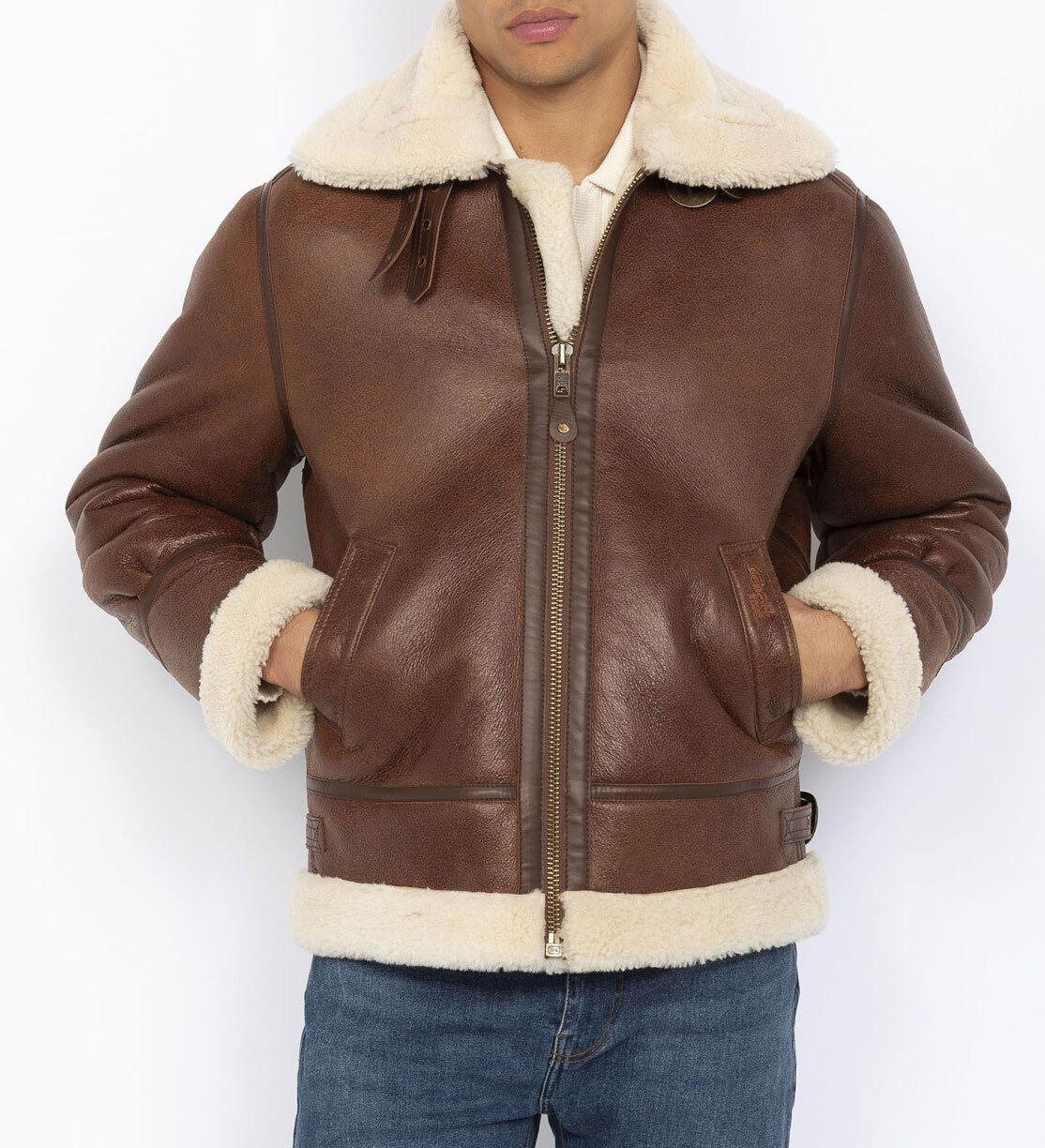 worn by American pilots and paratroopers during the Second World War, the bomber is a jacket steeped in history. The Bombardier is from the Schott brand, it is one of the masterpieces of their collection. The sheep bomber was designed to withstand extreme conditions. In order to better protect them, the bomber is made of returned sheep, that is to say in sheepskin lined with its own fur. Ideal for winter what to ask for more hot than sheepskin, thanks to its zip closure impossible for the cold to rush into it. It is very comfortable and pleasant to wear even if the sheep is a certain weight. It has a very large pass, wrists and a stuffed size. You can adjust your jacket thanks to its tightening legs at the hips. Under the pass, you will find two loops and its two riveted legs. Ideal for all morphologies with its straight, comfortable, timeless cut. For men, we target an elegant look and well cut pieces. The exterior obsessor of the Peausserie is slightly aged, which gives a lot of cachet to this piece Adopt the Bombardier Schott LC 1259, a guarantee of know-how and quality. This Schott bomber measures 66 cms of body length on a size S, that is to say the base of the pass at the bottom of the garment.