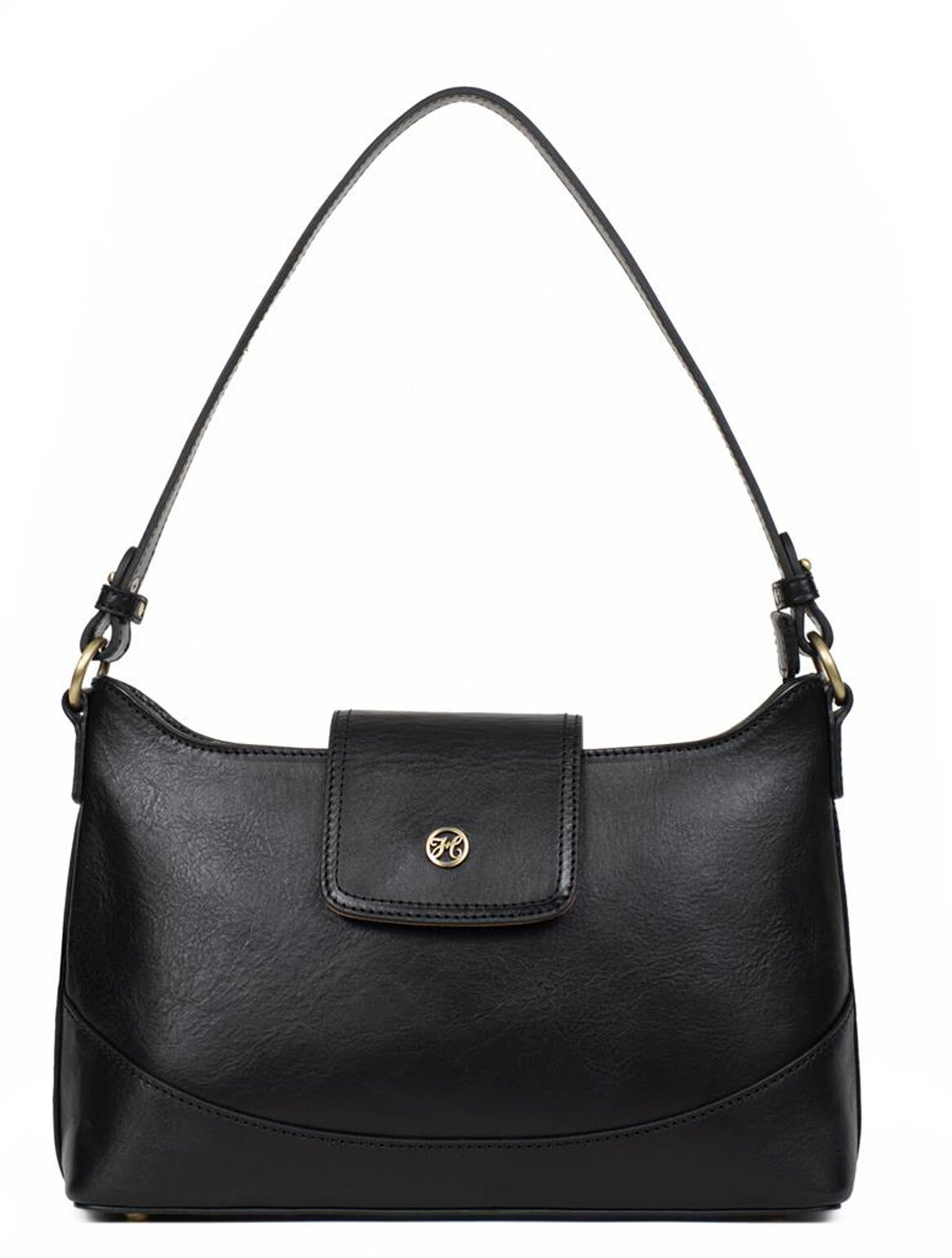 Black color cowhide bag for women from the Hexagona brand. We find a trendy and chic look at the same time with its grained appearance, its rectangular shape and its slightly aged side. The leather bag has a closure on the rear and closes using a zipper and a flap with a magnet. Inside, the lining is synthetic and you will find a unique compartment separated by a zipped pocket and you also have various pockets. The bag is worn both in the shoulder and by hand with its non -adjustable shoulder strap. The dimensions of the bag are: