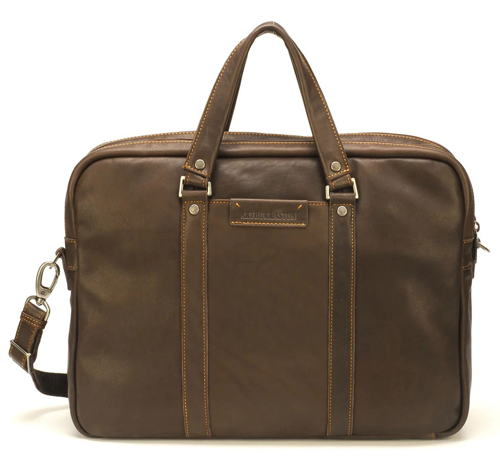 Briefcase in semi-aniline full-grain cowhide leather from the ARTHUR & ASTON brand. You will love the Johany range which combines elegance, quality (thanks to the careful stitching and clever design due to its numerous storage spaces and its well-thought-out volumes. Indeed, inside, we find a cotton lining, 2 zipped gussets with in the 1st compartment; 2 pen slots, 1 zipped patch pocket and a kangaroo pocket. In the 2nd compartment, you find; 1 padded multimedia pocket with magnetic tab to store a computer or tablet. On the outside, there is 1 zipped pocket with an incorporated cotton trolley loop. The leather briefcase can be carried by hand with its 2 reinforced handles or on the shoulder thanks to its adjustable and removable leather and cotton strap.