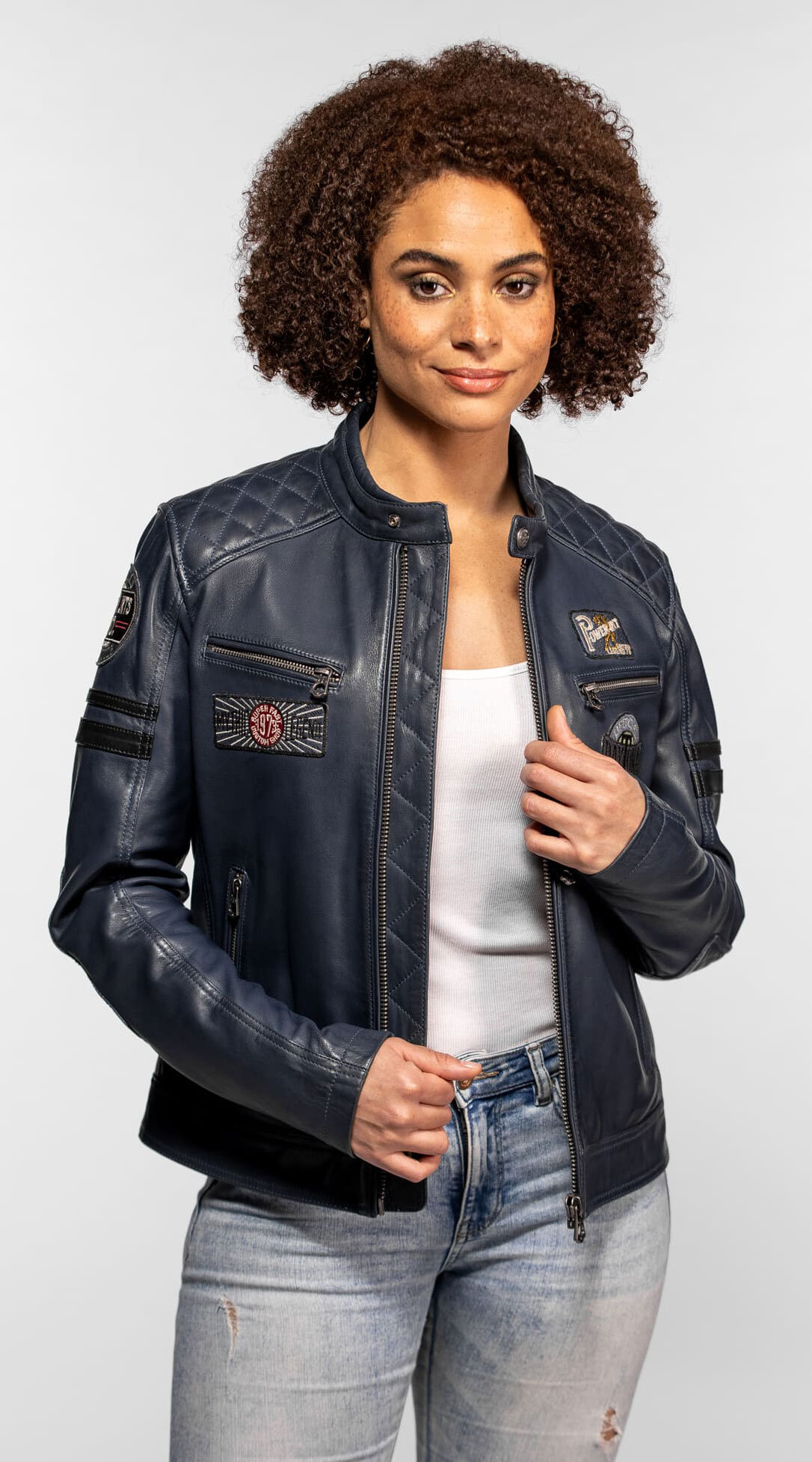 Daytona women's blue biker style leather jacket