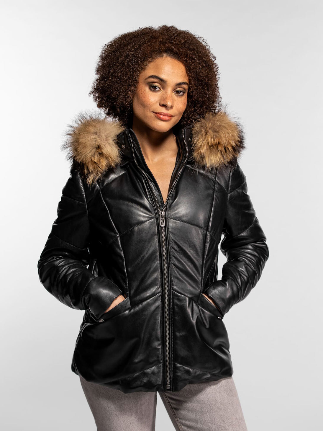 The urban cold does not forgive clothing that is too light and sacrifices your look for technique. Staying warm often ends up weighing down the silhouette with soulless synthetic materials. The women's leather down jacket with fur "Nagel" from Rose Garden combines extreme thermal protection with the raw elegance of real leather.