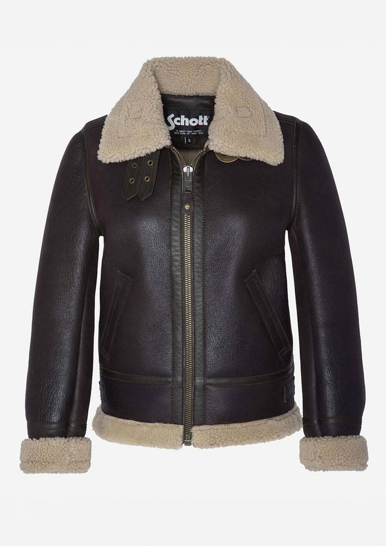 The real bomber, aged appearance, sheepskin interior from the Schott brand. Worn by American pilots and paratroopers during the Second World War, the bomber is a jacket steeped in history. This sheepskin bomber is from the Schott brand, it is a must-have in their collection. The sheep bomber has been designed to withstand extreme conditions. The bomber is made of shearling, that is to say, sheepskin lined with its own fur. Ideal for spending the winter and the cool evenings with its wool which cuts the wind and keeps the body warm, what could be warmer than a sheepskin!! In addition, the Bombardier jacket closes with a zipper so it is impossible for the cold to get in, no cold snaps, that's guaranteed. It is very comfortable and pleasant to wear even if it is true that the sheep is a certain weight. It has a wide collar, cuffs and a fur-lined waist. You can adjust your jacket thanks to its tightening tabs at the hips. Under the collar, you will find two buckles and its two riveted tabs. You have strips of smooth dark brown leather, an impeccable finish. Ideal for all body types with its straight, comfortable, timeless cut. We aim for an elegant or casual look, it adapts to all styles, always as trendy, we love its vintage side. The exterior appearance of the leather is slightly aged, which gives a lot of character to this piece. Try this bomber jacket and adopt it, it is an essential piece for your wardrobe.