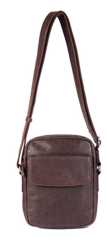 Small brown cowhide leather bag from the Hexagona brand. We like its practicality by freeing your hands. Ideal for your outings, weekends, you bring your personal belongings with you. We like its aged patina appearance, more relaxed, sportswear.