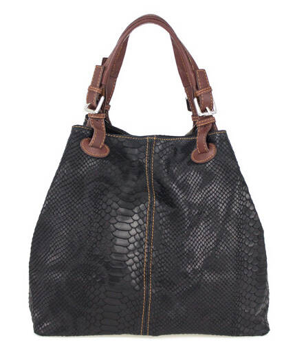 Handbag for women in cowhide in a python printed light. It is died of 2 handles and a removable brown leather strap. Very original, the leather handbag closes with a magnet. Inside, you will find a large compartment with 1 zipp bellows in the middle. Its dimensions are 23 cms (high) and 33 cms in length (base), 20 cms in width and 28 cms of depth.